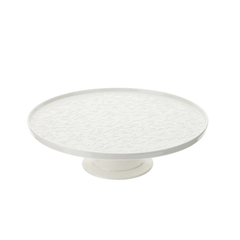 Aggiungi un tocco di eleganza alla tua tavola con l’alzata in porcellana Hervit con roselline in rilievo. Acquista ora su Candida Celiento!