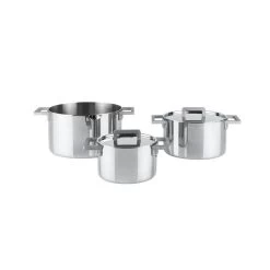 All’esterno, è in acciaio cromato, il che rende questa casseruola utile anche per l’induzione. Il secondo strato è in acciaio inox 18/10, mentre l’interno è in alluminio per una più veloce diffusione del calore.