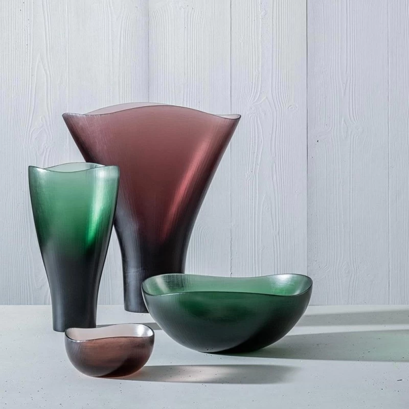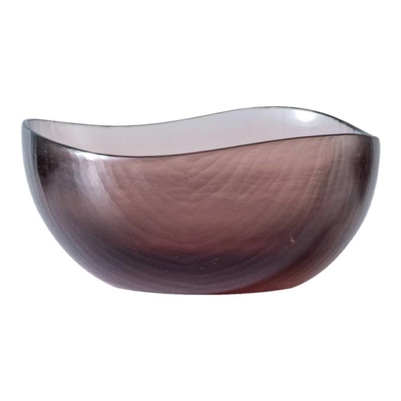 Realizzato in edizione numerata limitata, il centrotavola di design Battuti Canoe di Venini veste di rosa cipria per celebrare i 100 anni del brand veneziano.