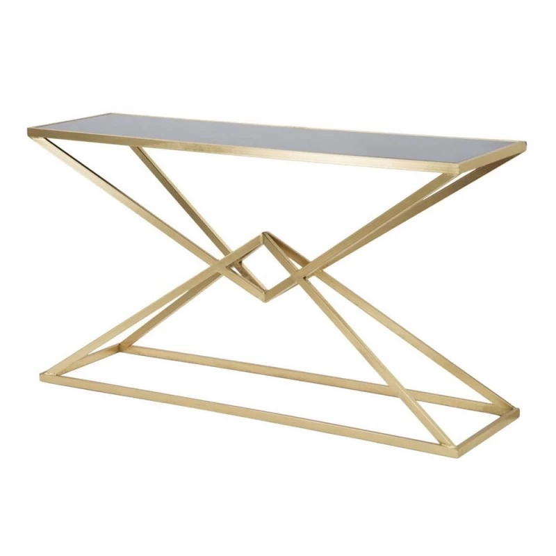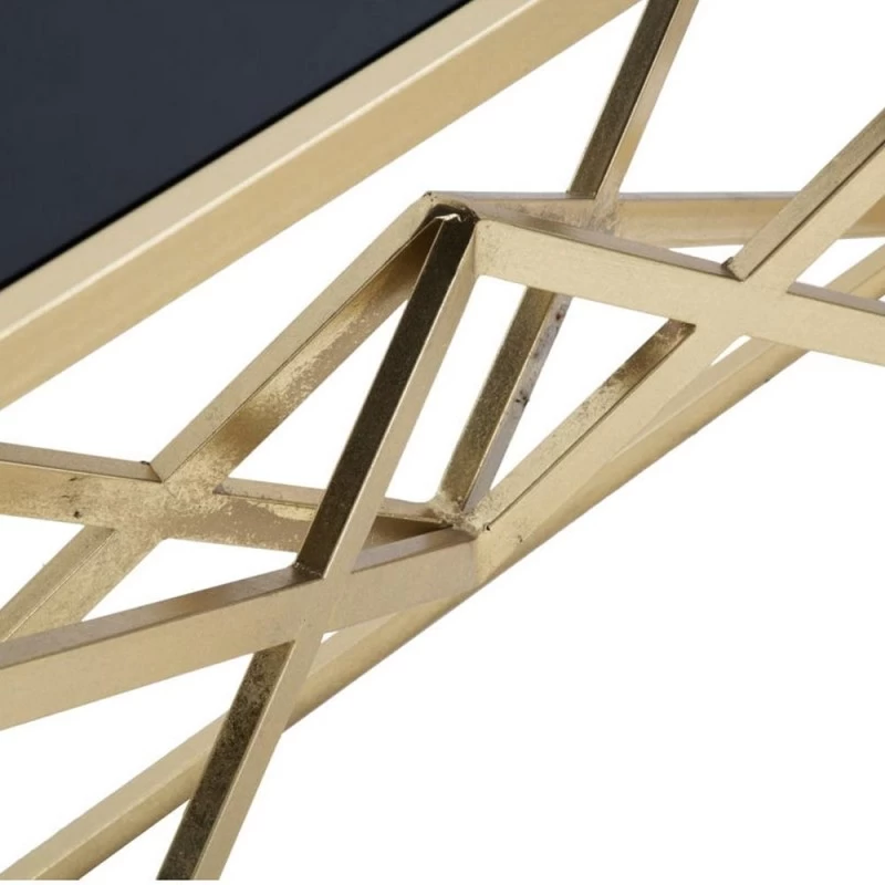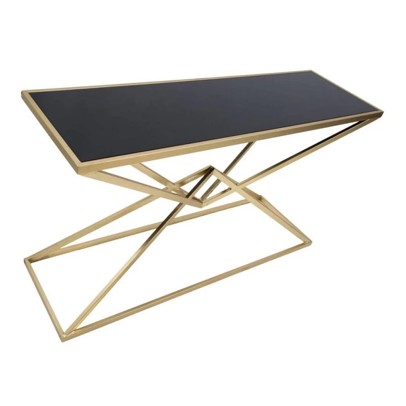 La splendida consolle di design Piramid è in metallo dorato con vetro nero. Un complemento d’arredo elegante e raffinato, che occhieggia allo stile Art Decò degli Anni 20 del secolo scorso.