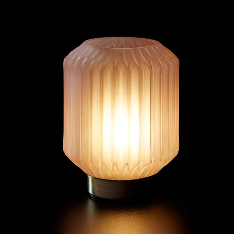 Molto glamour questa lampada da tavolo Bright di Enzo De Gasperi, realizzata in vetro rosa chiaro.