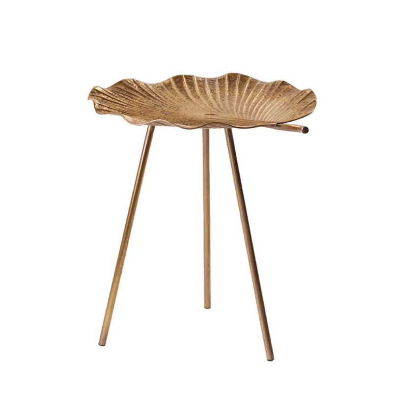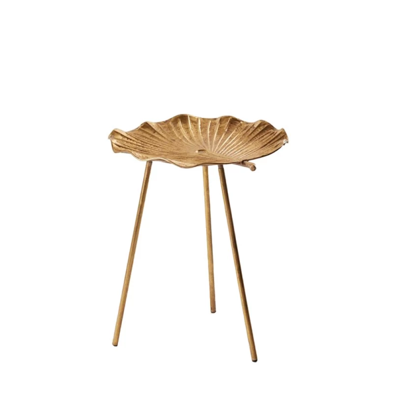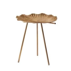 Realizzato in metallo color oro, riporta un piano a forma di foglia sapientemente lavorato.