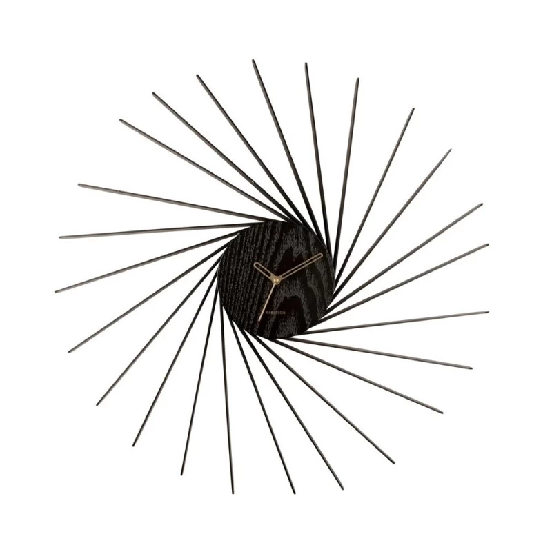 Helix XL è l’orologio di design firmato da Karlsson qui proposto nella versione nera con lancette oro.