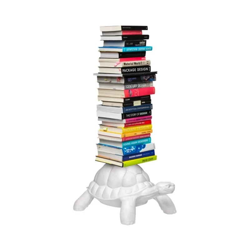 La libreria di design Turtle Carry di Qeeboo è qui proposta in una versione bianca davvero notevole.