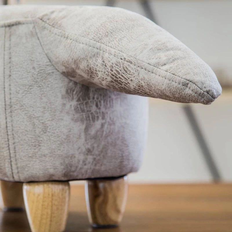 Il pouf di Novità Home raffigura un piccolo dinosauro di colore grigio. Bellissimo ed originale complemento d’arredo che è possibile sfruttare come seduta, sgabello o poggiapiedi. Realizzato in ecopelle porta un tocco di originalità all’ambiente.