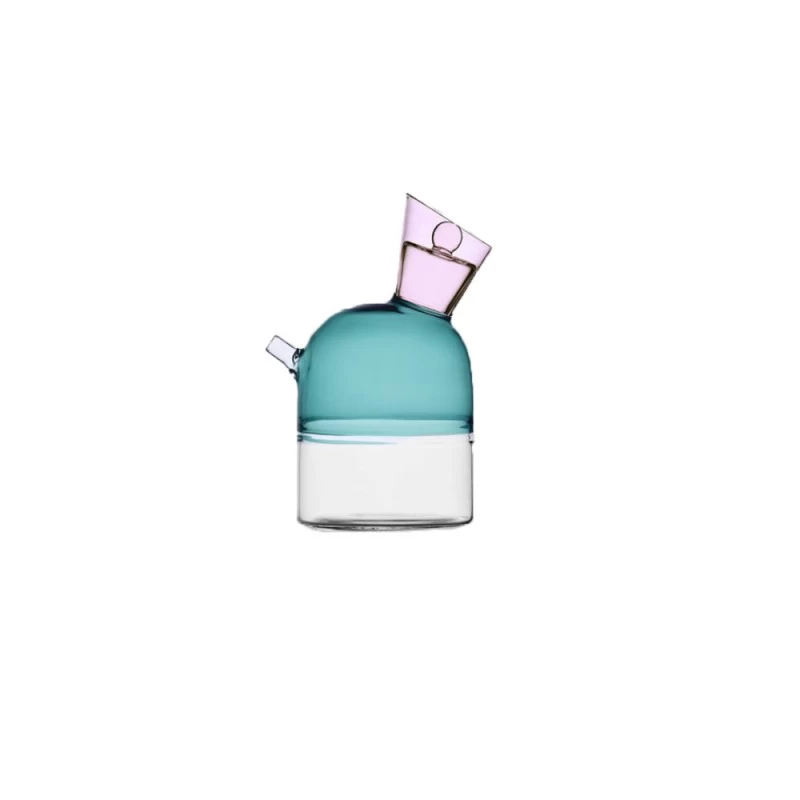Un piccolo capolavoro di design, l’oliera Travasi di Ichendorf rosa e petrolio.