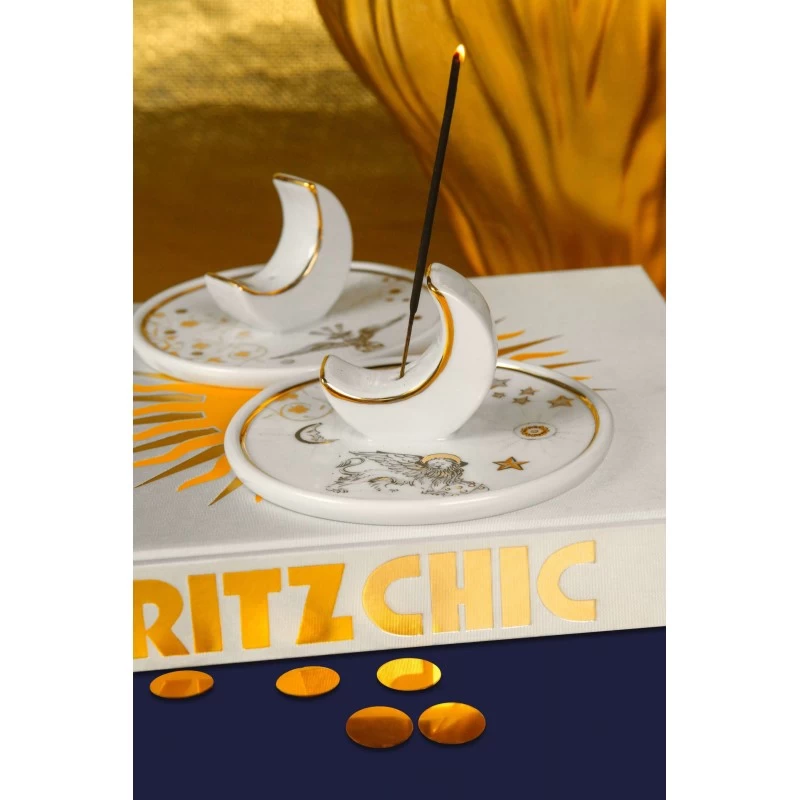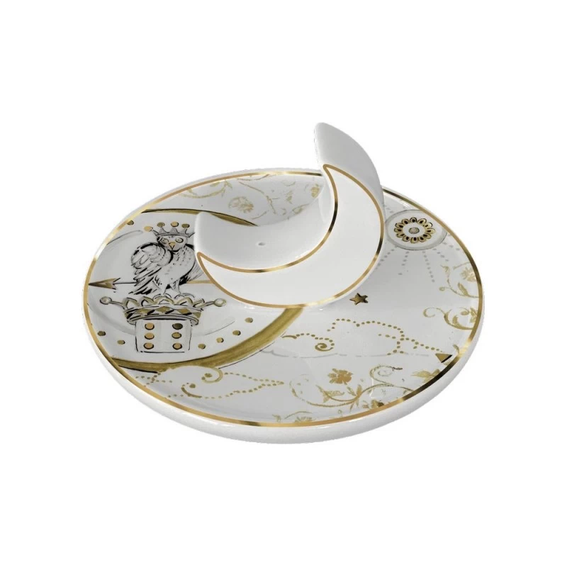 Un gufo coronato è il motivo decorativo di questo portaincenso in porcellana di Baci Milano, Kosmo Gufo.