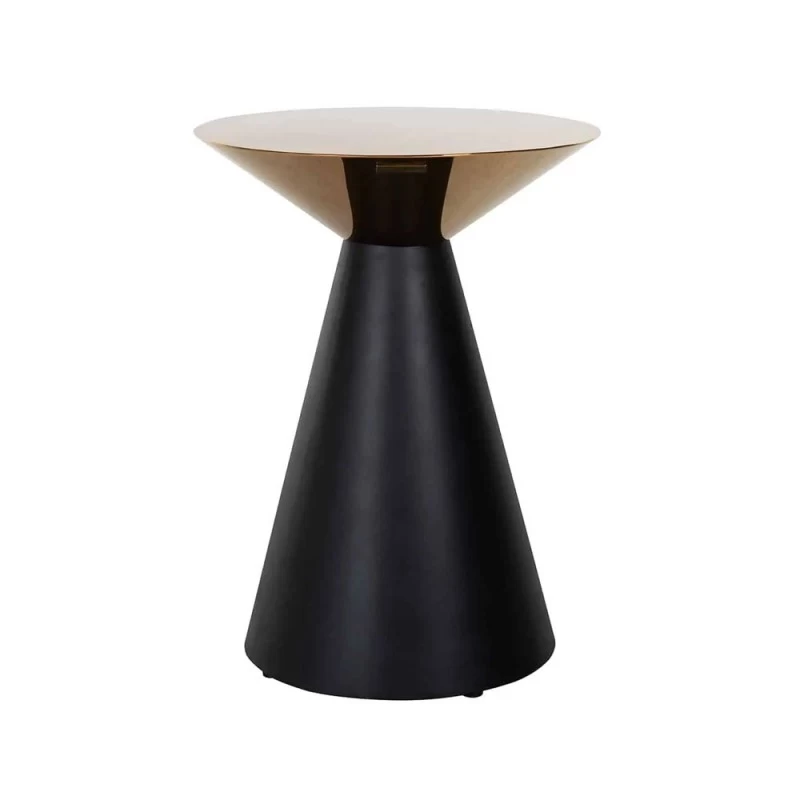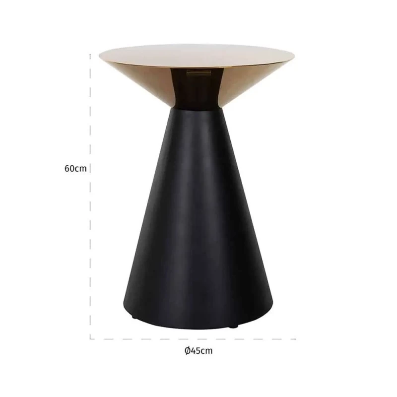 Realizzato in ferro e acciaio nero, riporta un piano color oro che lo connota come un complemento d’arredo glamour ma moderno, adatto alla casa che ama lo stile.