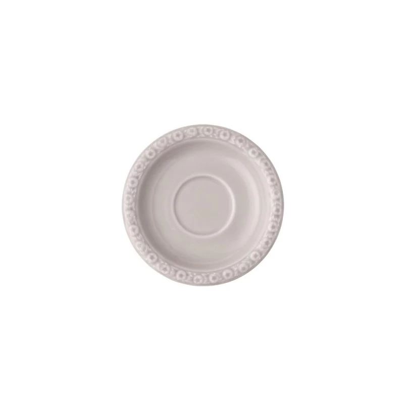 Sono piattini da espresso in porcellana elegante, dolcemente tondeggiante e dal decoro armonioso e raffinato.