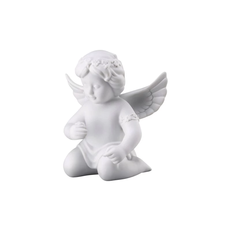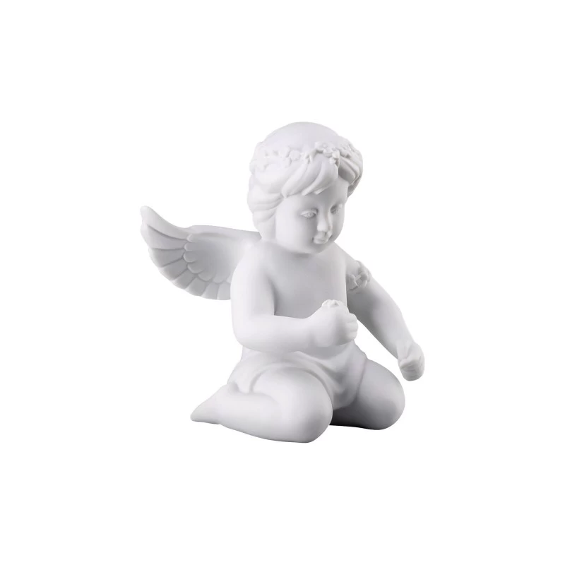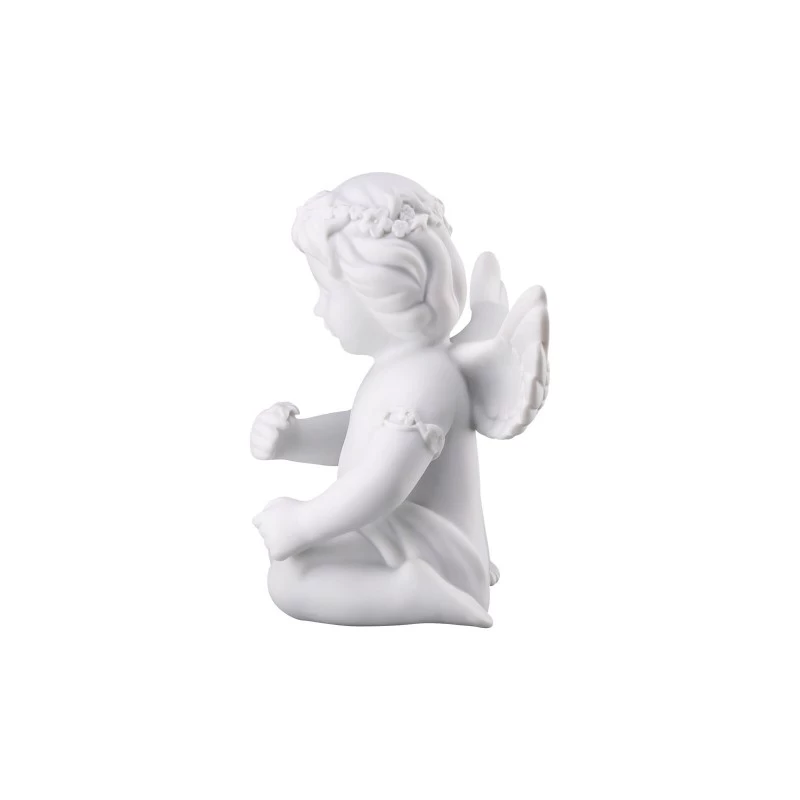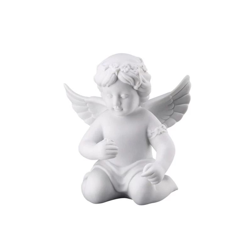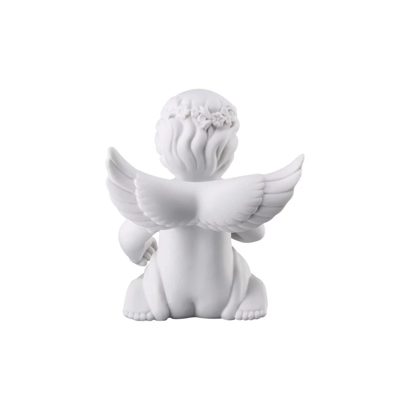 La statuetta in porcellana bianco opaco raffigura un tenero angelo con il capo ed il braccio adornato di fiori: davvero irresistibile!
