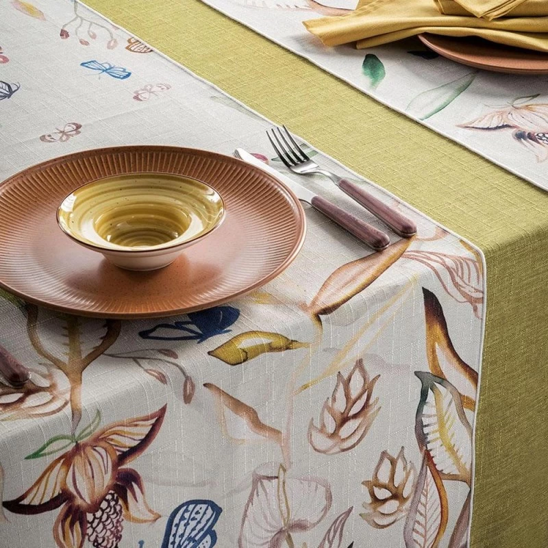 Il runner floreale Bali de L’Oca Nera è perfetto per impreziosire le mise en place primaverili ed estive.