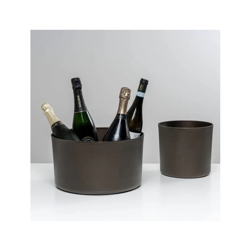 Il secchiello per il ghiaccio minimal KN Glacette di KnIndustrie color bronzo si adatta alla perfezione ad ogni mise en place.