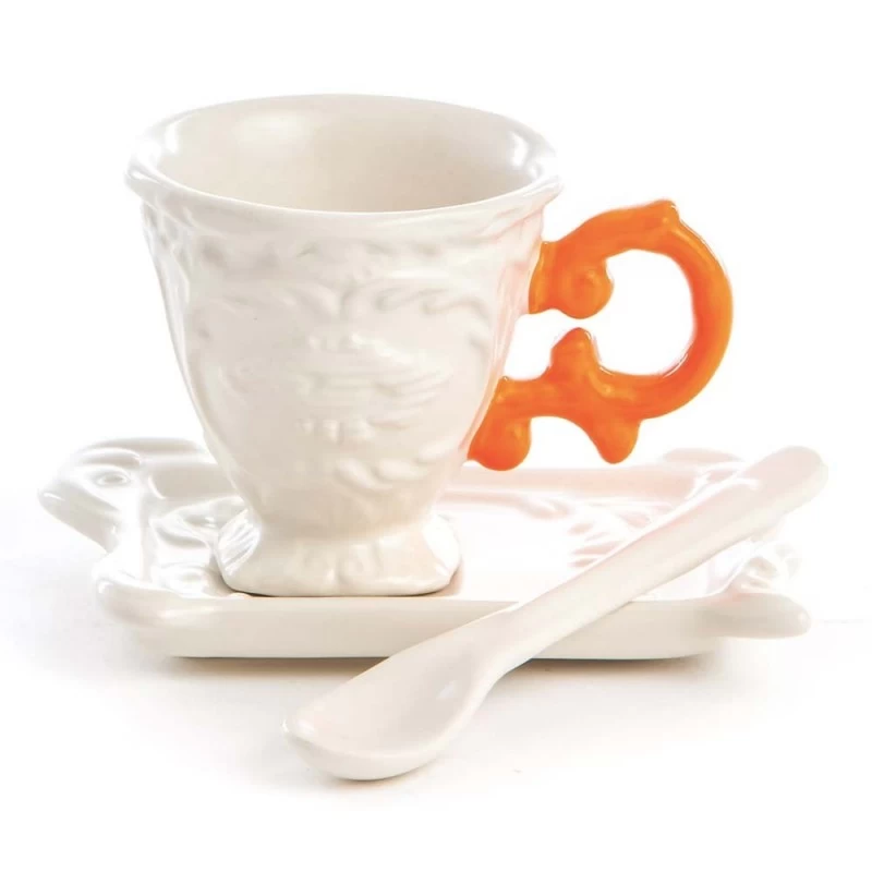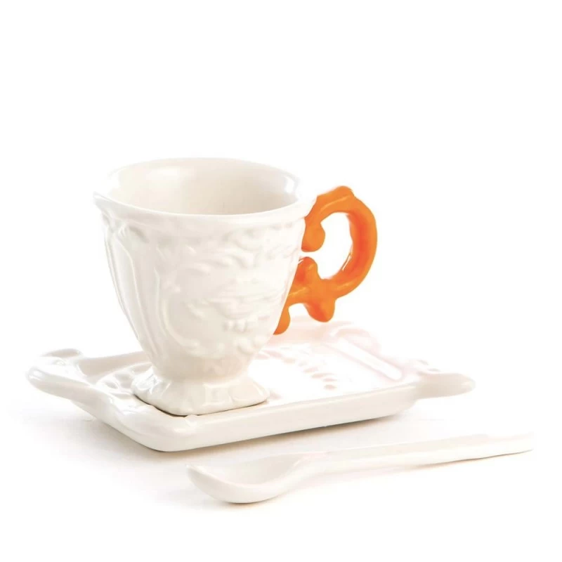 Il set da caffè in porcellana “I-Wares” con manico arancio di Seletti è perfetto per realizzare il tuo servizio da caffè particolare ed esclusivo. Ottimo come idea regalo, è disponibile in diverse colorazioni.