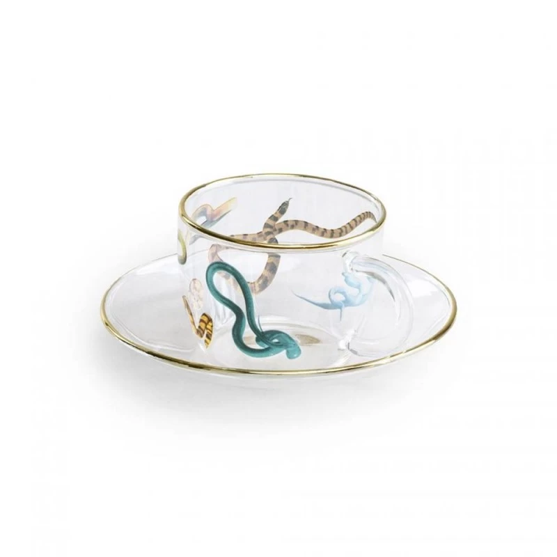 La tazzina da caffè di design Seletti, Snakes, rientra nella linea Toiletpaper. Bella e particolare, è realizzata in vetro e provvista di piattino. Perfetta per comporre un servizio da caffè Seletti.