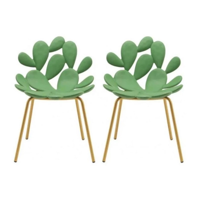 Le sedie di design Filicudi verdi di Qeeboo omaggiano il Mediterraneo e l’omonima isola con le sue pale di fico.