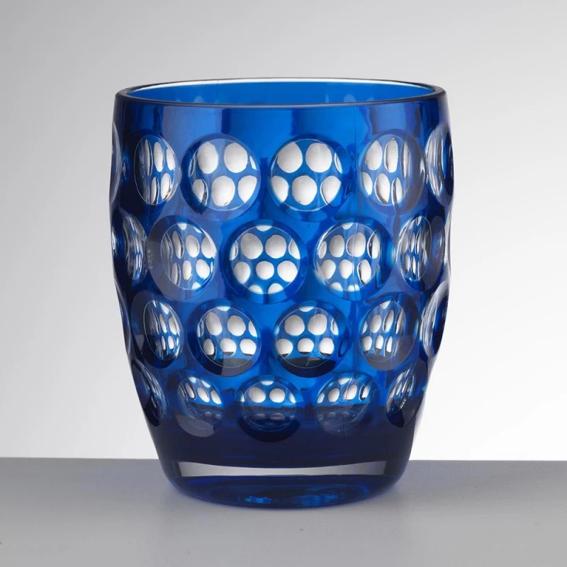 Questi bicchieri blu sono in cristallo sintetico (acrilico), un materiale leggero e attuale capace di offrirci innovativi accessori per la tavola e la cucina.