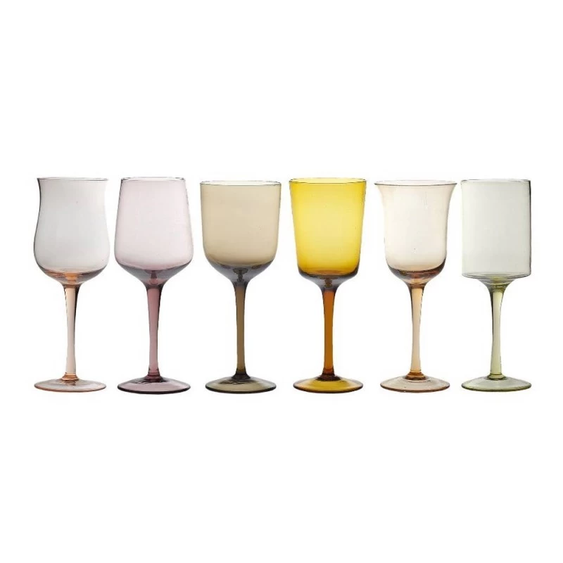 Il set con 6 calici Bitossi di forme assortite è realizzato in vetro soffiato. Si tratta di bicchieri originali e colorati, perfetti per una mise en place particolare.