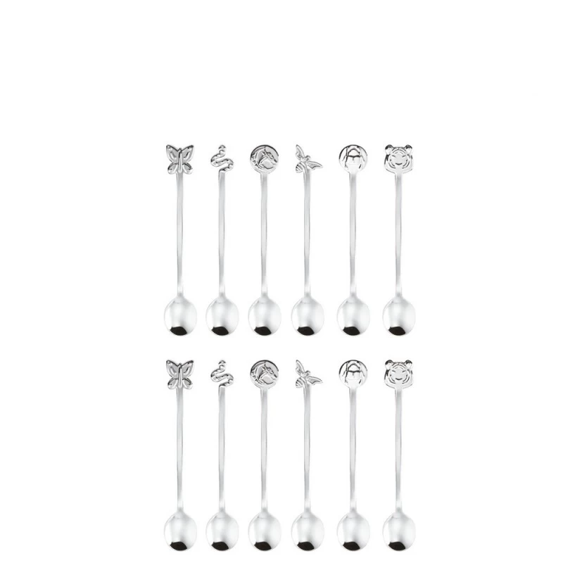 Il set di 12 cucchiaini della collezione Party Fashion di Sambonet in acciaio inox 18/10 con i simboli di animali fantastici ed esotici, darà un tocco di originalità ai tuoi aperitivi e alla pausa caffè.