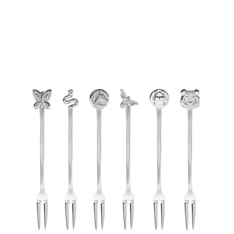 Il set di 6 forchettine della linea Party Fashion di Sambonet in acciaio inox 18/10 è impreziosito da terminali a forma di animali esotici e fantastici ed è perfetto per gustare dessert e aperitivi ma anche come un’idea bomboniera utile e raffinata da matrimonio.