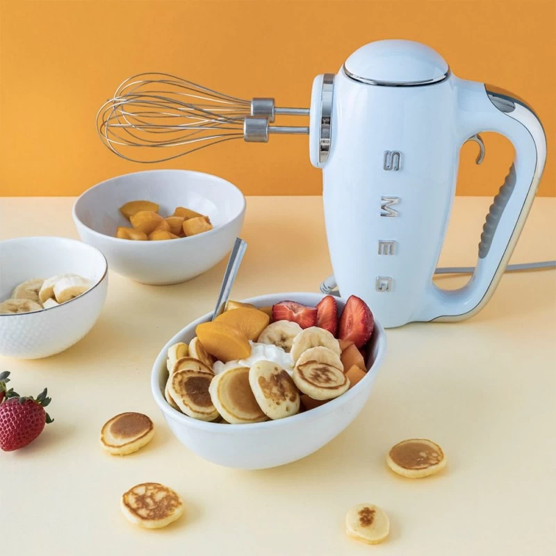 Dalla colorazione delicata, questo sbattitore azzurro Smeg ha un corpo in plastica ed un motore da 250W.