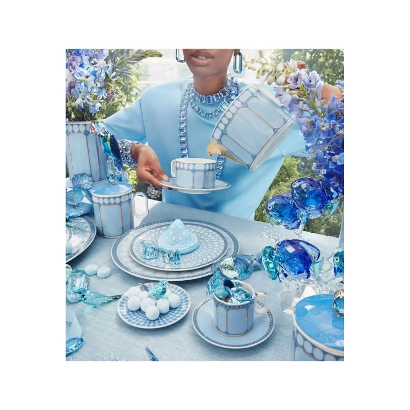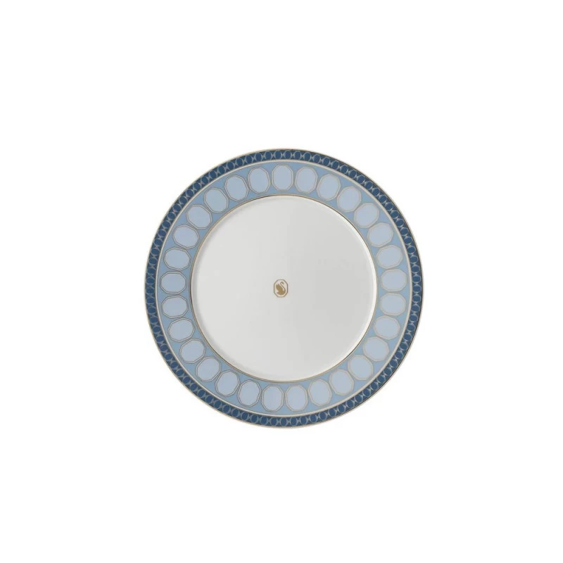 Il piatto da frutta e da dessert in porcellana di Swarovski x Rosenthal fa parte della collezione Signum Azure.