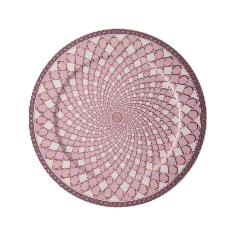 Per una mise en place romantica, questo piatto segnaposto in porcellana rosa Signum Rose di Swarovski x Rosenthal è perfetto.