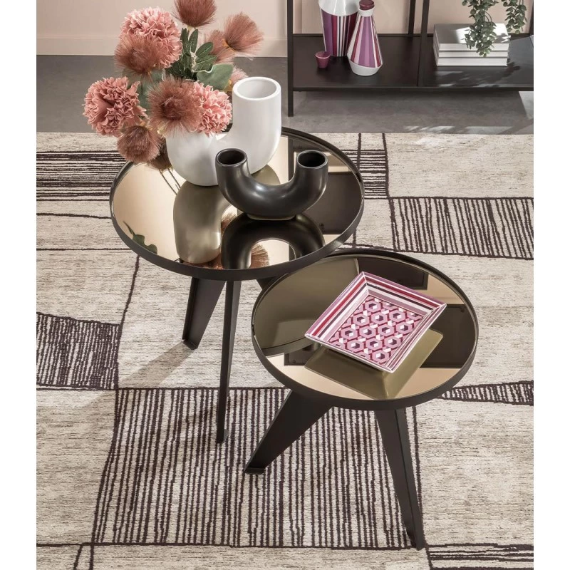 Questo tavolino da caffè è in metallo con 3 piedi, mentre il ripiano è a specchio: l’effetto è davvero wow!