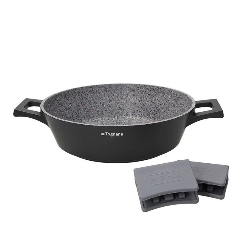 Il Tegame firmato Tognana appartiene alla linea Ambiziosa. Realizzato in alluminio con rivestimento interno antiaderente con due manici laterali e provvisto di presine di silicone.