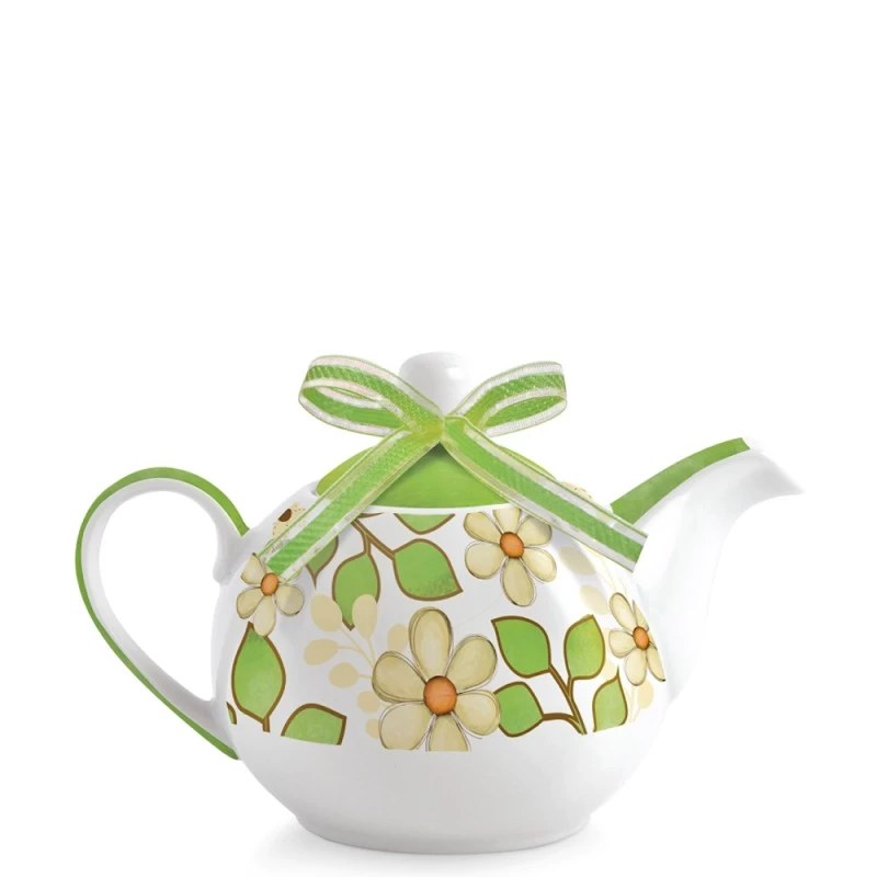 La teiera La Vita di Tea for Two verde in porcellana è un utensile prezioso per tutti gli amanti del buon the. Decorata con margherite e morbide foglioline, è una splendida e utile idea bomboniera da comunione.